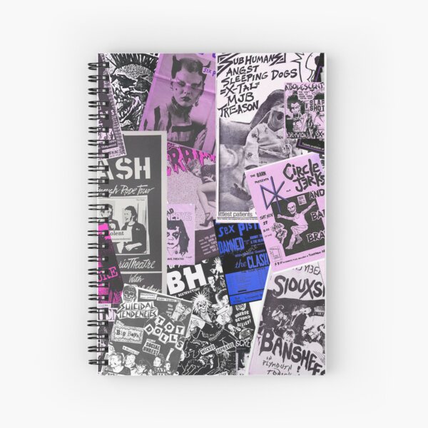 "Punk Rock Bands Flyers Collage Aesthetic Punk Colors" Spiral Notebook ...