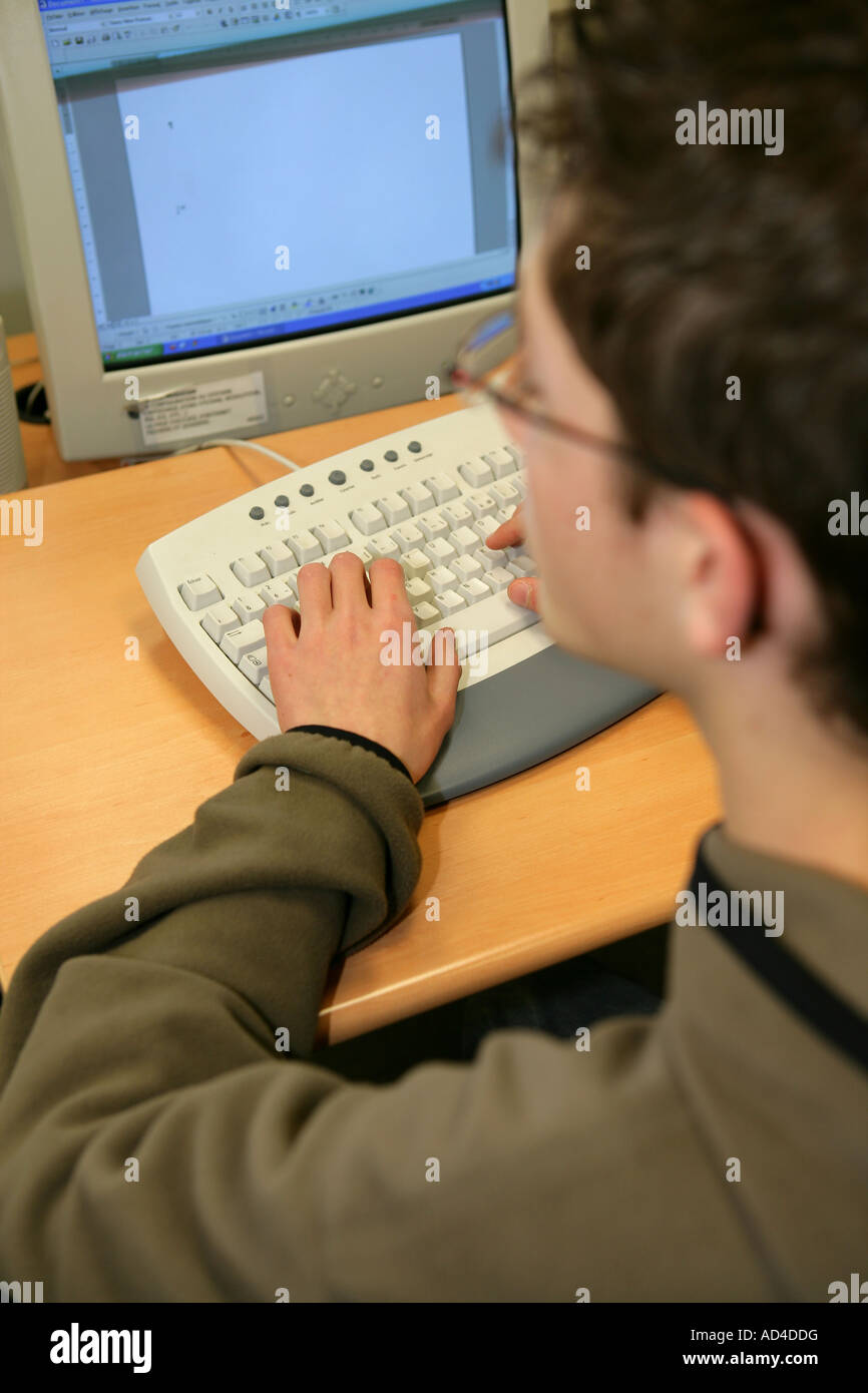 Pupil using a computer - Stock Image - H460/0246 - Science Photo Library