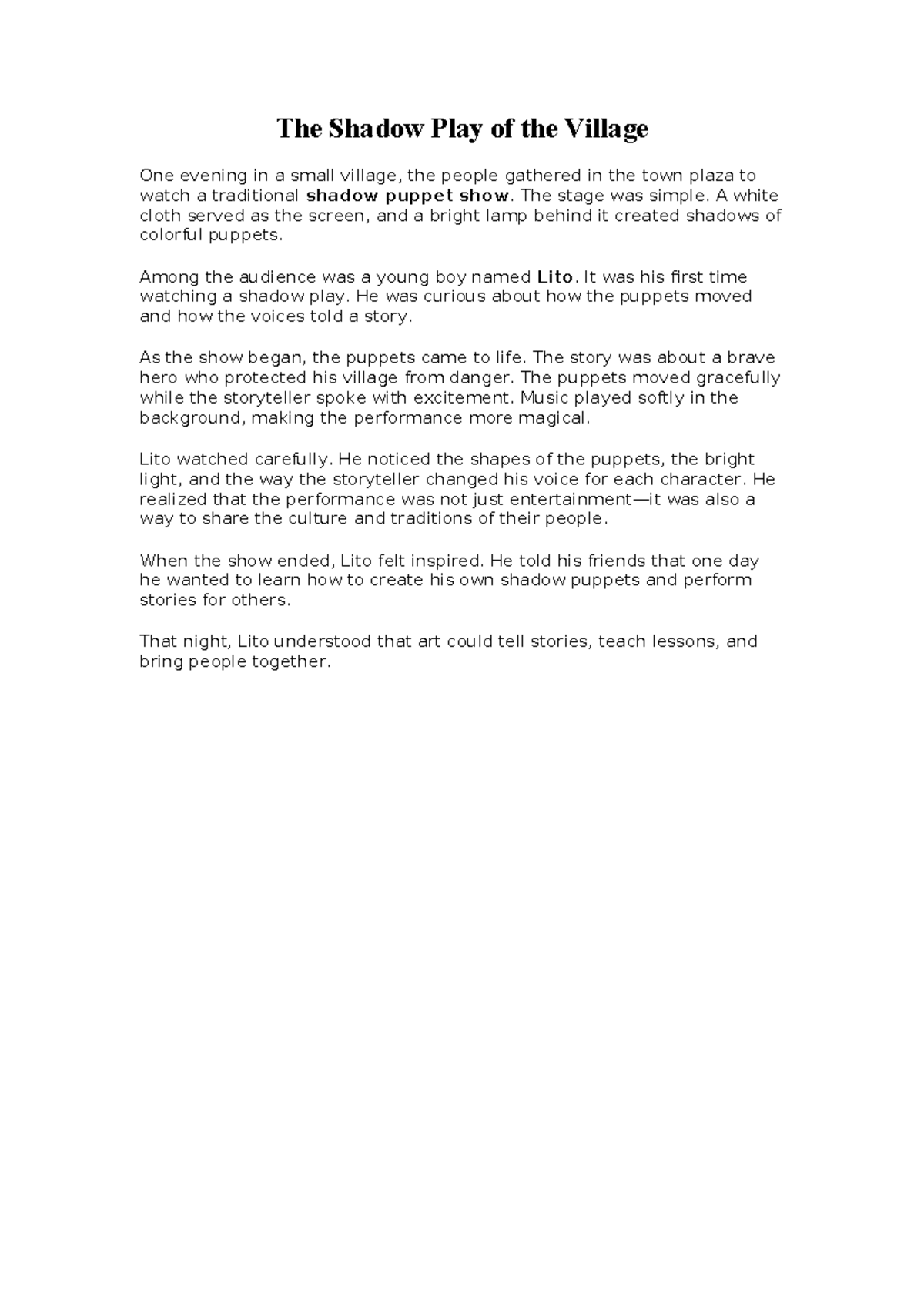 Shadow Puppet Show: A Cultural Experience in the Village - Studocu