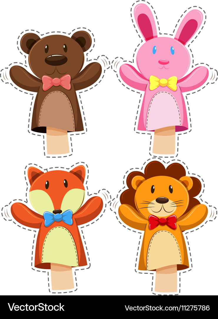 Sticker set with hand puppets Royalty Free Vector Image