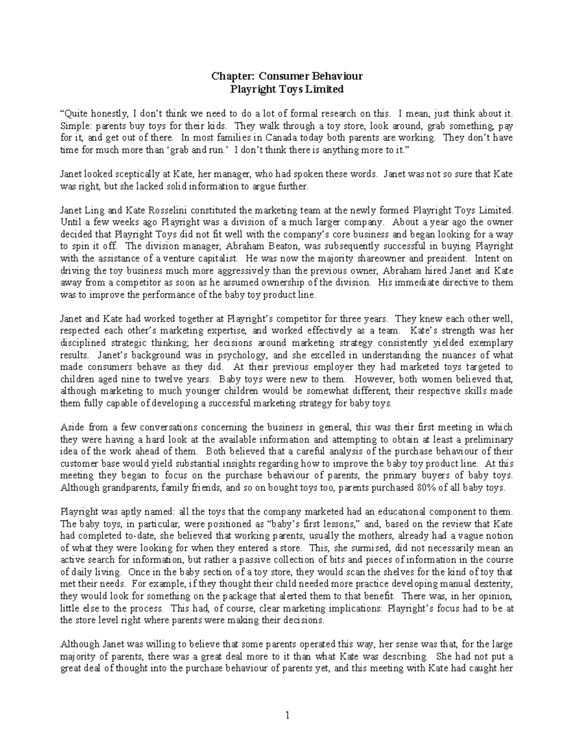 Case Study: Consumer Behavior in Toy Purchases (CBE 101) - Studocu