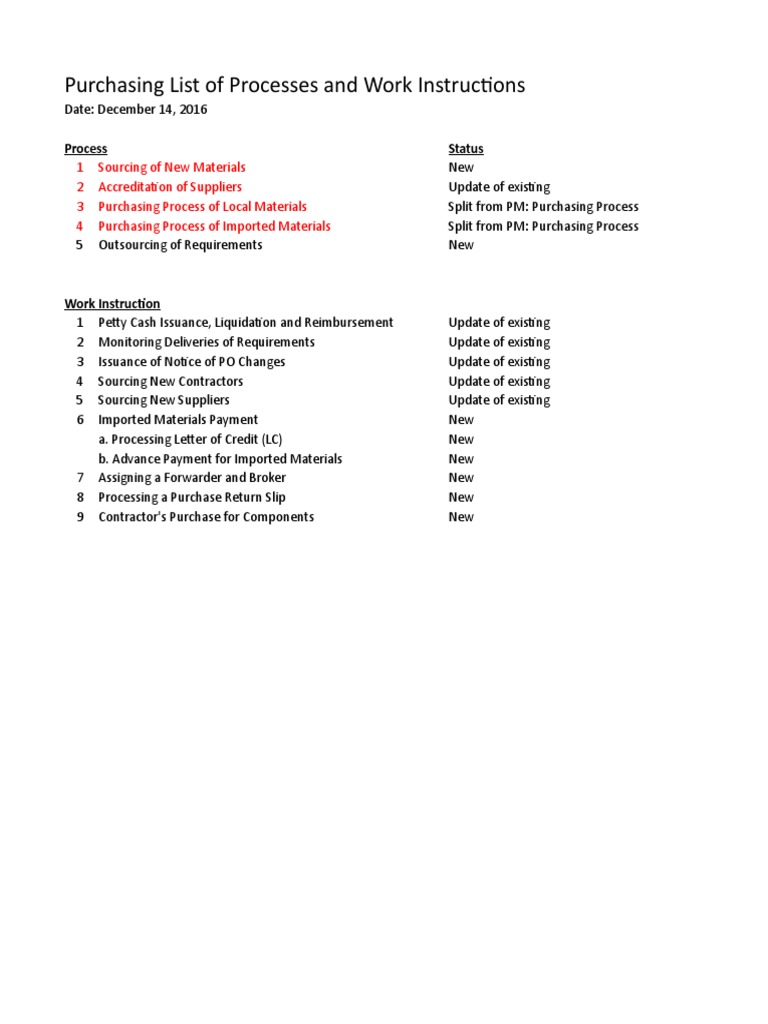 Purchasing List of Processes and Work Instructions | Accounts Payable ...