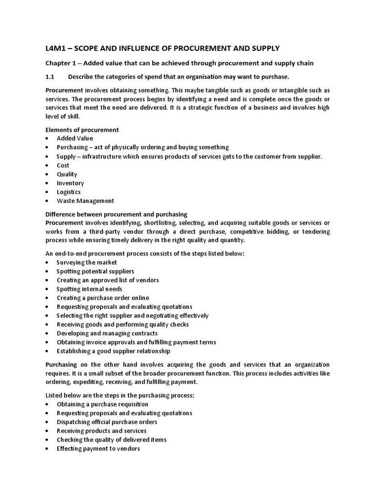 Scope and Influence of Procurement | PDF | Supply Chain | Supply Chain ...