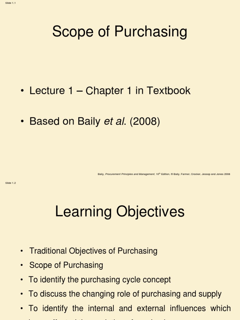 PP M Pp01 Lecture 1 Scope of Purchasing 19-9-2011 | PDF | Procurement ...