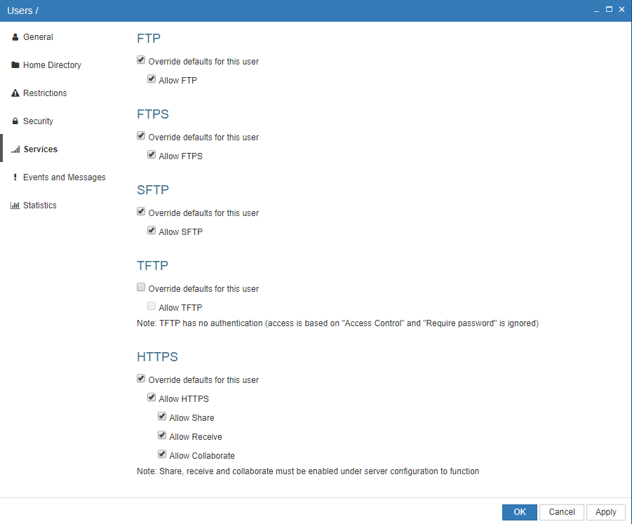 Setting up services for a user - ProVide Server: Private Cloud ...