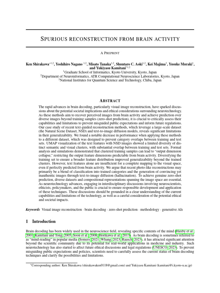 Purious Reconstruction From Brain Activity | PDF