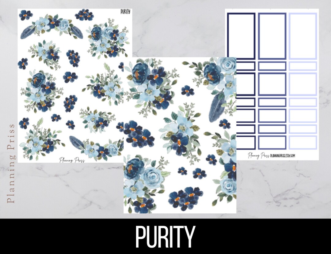 Purity Floral Deco Sticker Kit/ Blue Floral Deco/kiss Cut Stickers - Etsy