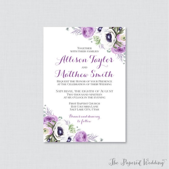 Purple Wedding Invitation Wedding Invitation Printable | Etsy