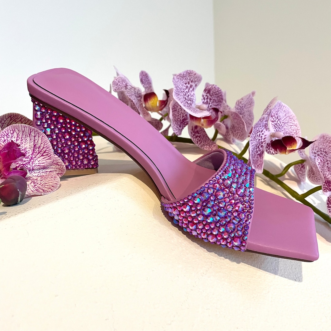 Purple Pointed Rhinestone Embellished Butterfly Sparkling Pumps