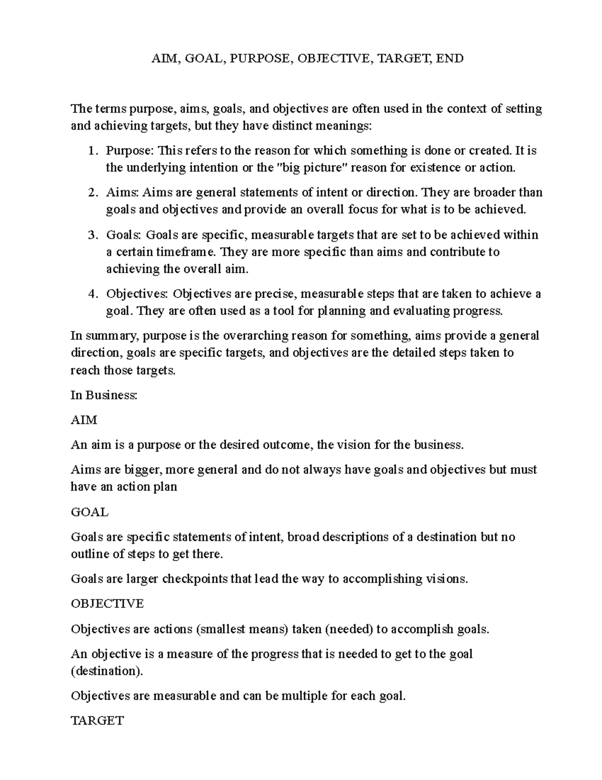AIM, GOAL, PURPOSE, OBJECTIVE, TARGET: Key Definitions and Distinctions ...