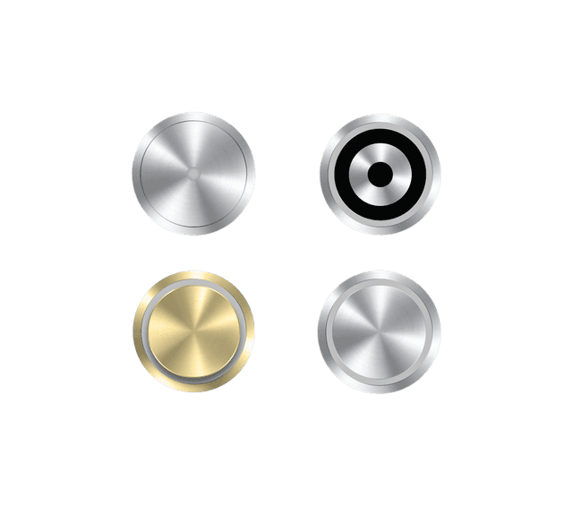 High-resolution image of a round metallic push button with a sleek ...