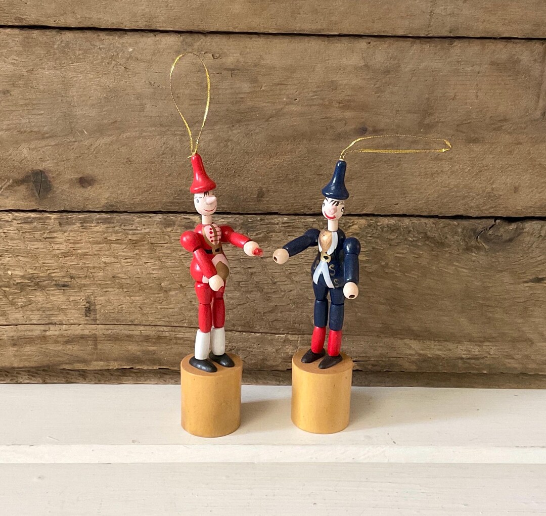 Vintage Push Puppets, Pinocchio, Wooden, Toy, Ornaments, Collapsable ...