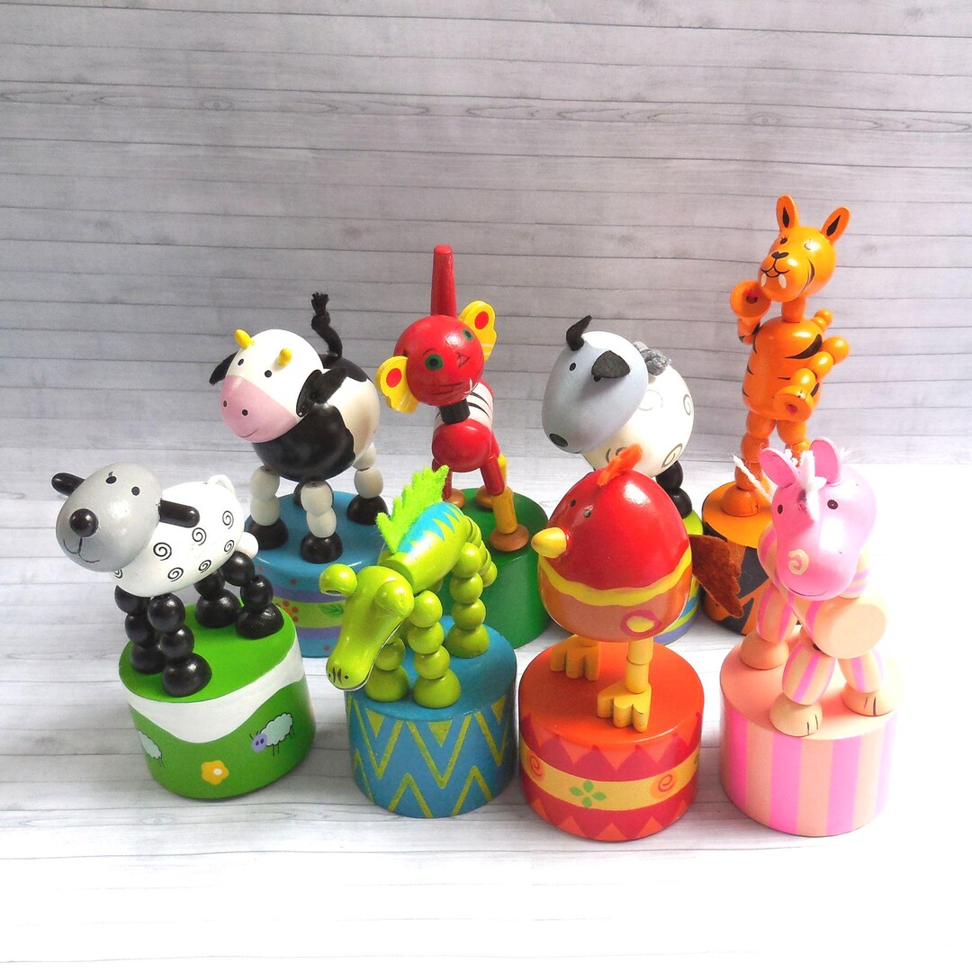 Mini Animal Wooden Pop-up Push Puppet Finger Toy for Kids - Push Puppet ...