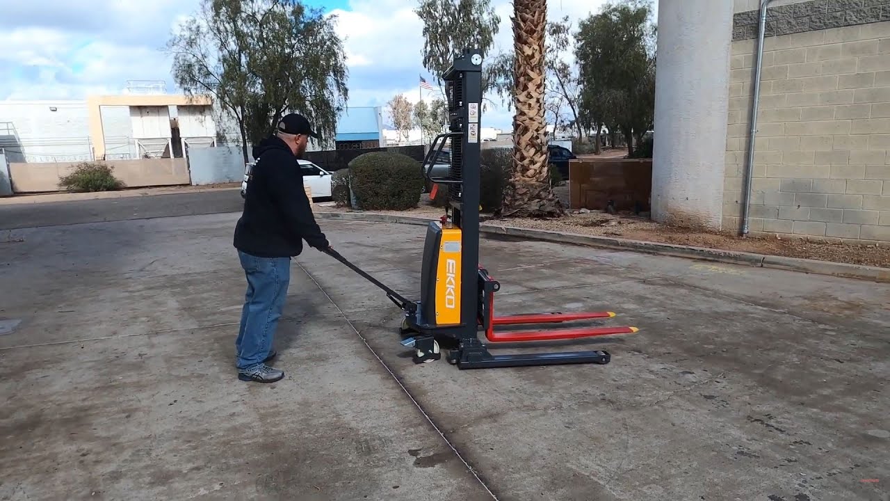EKKO EA15B 3,300lb Electric #5107 - Manual Push Stacker For Sale - YouTube