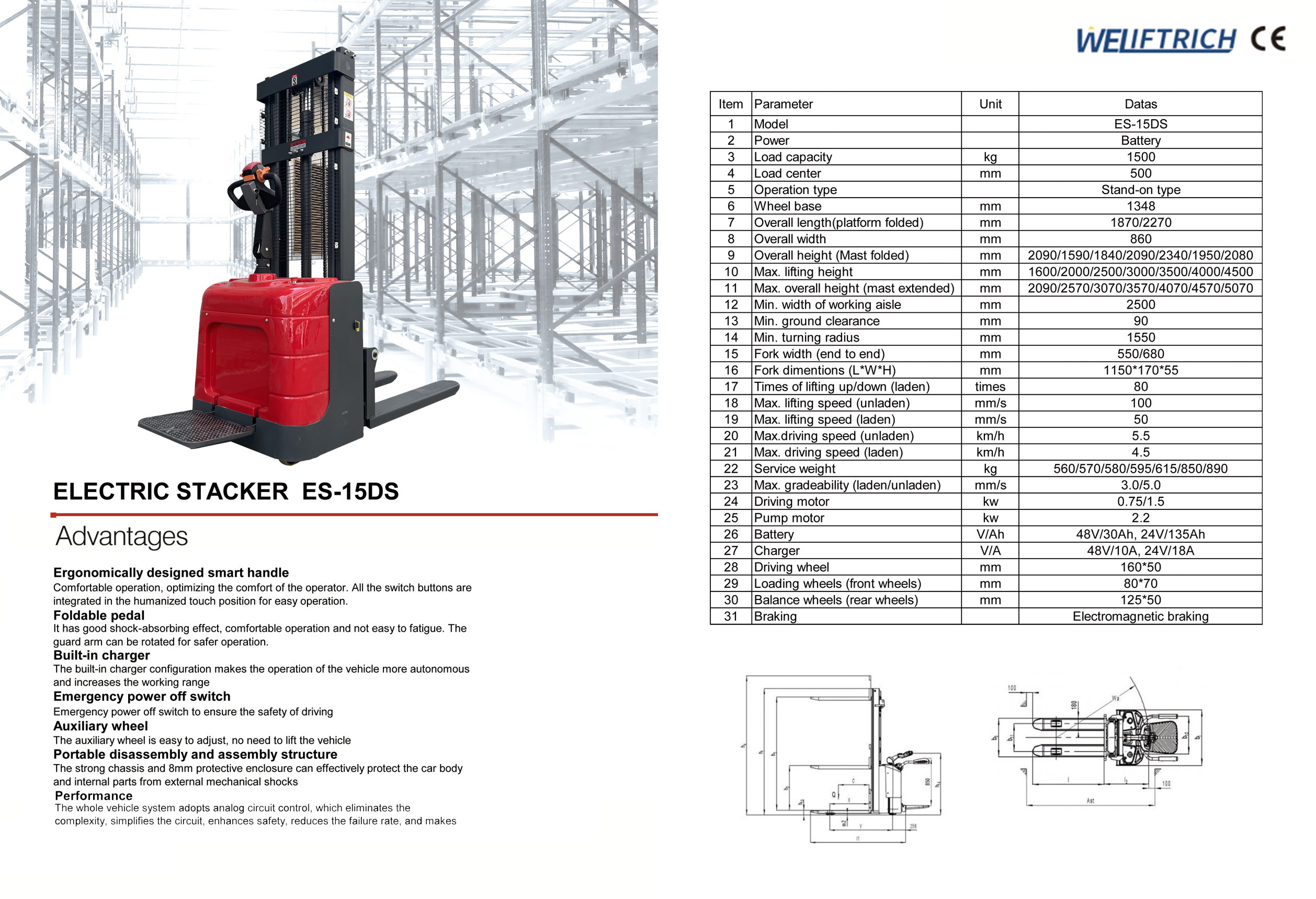 ESPi1227 - Electric Pallet Stacker with initial lift for dual pallet ...