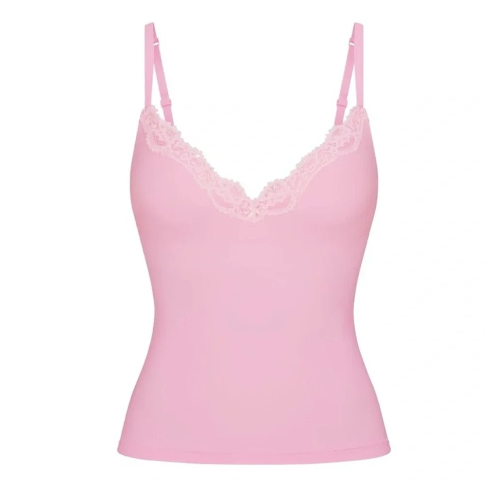 SKIMS | Tops | New Skims Bubblegum Pink Lace Trim Push Up Camisole Tank ...