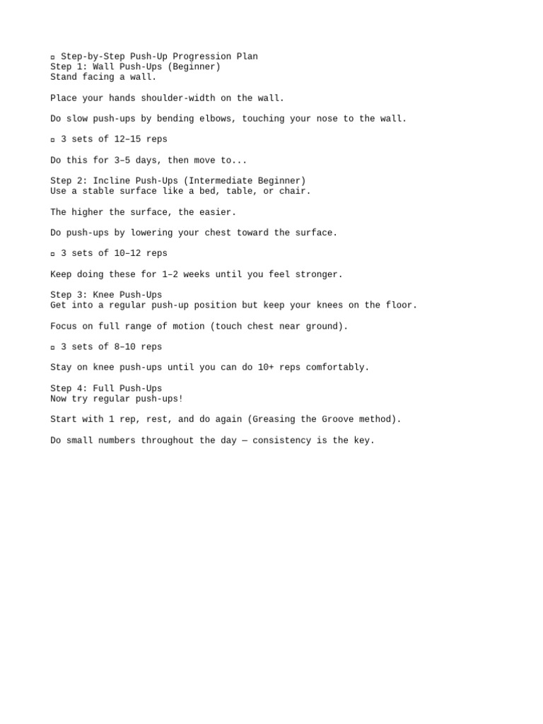 Push Up Progression Plan | PDF