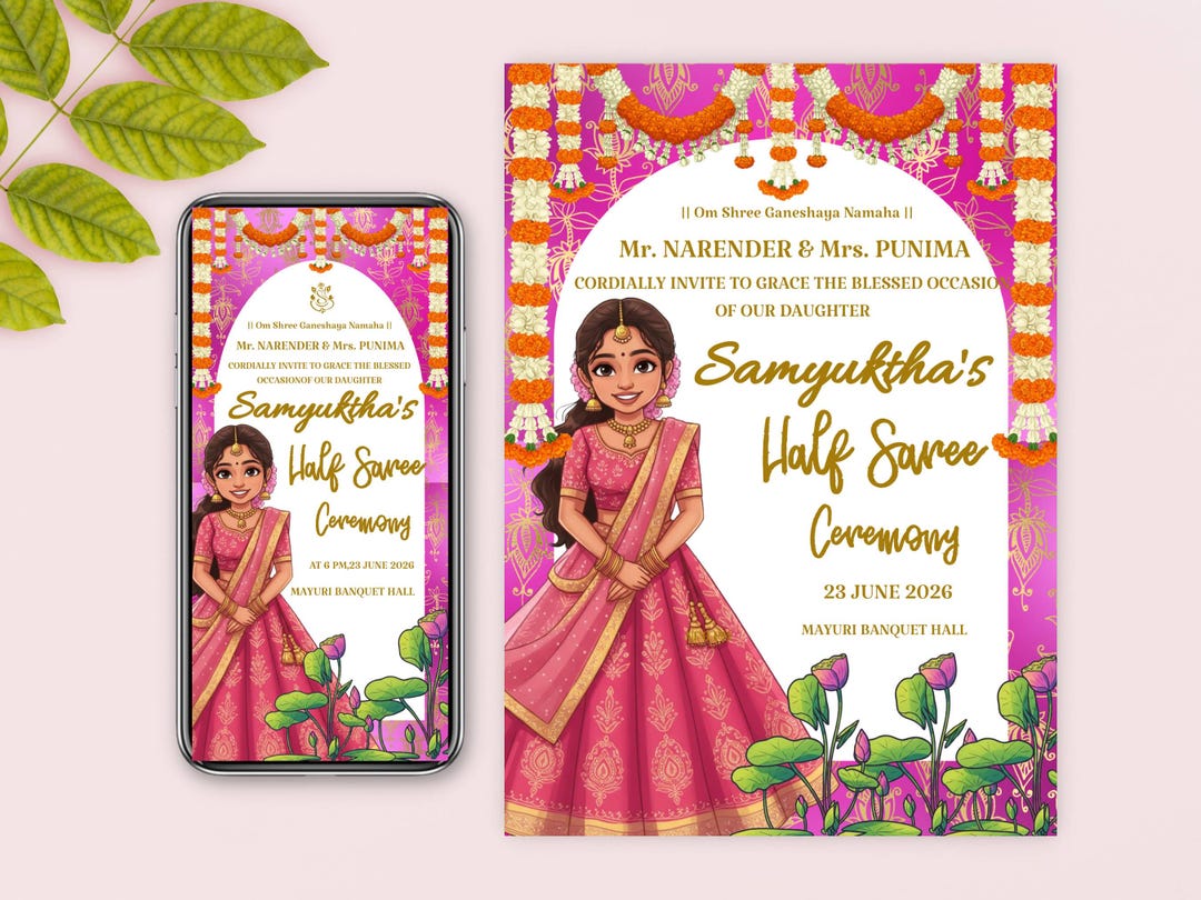 Celebrate Her Milestone with a Half Saree Invitation Card