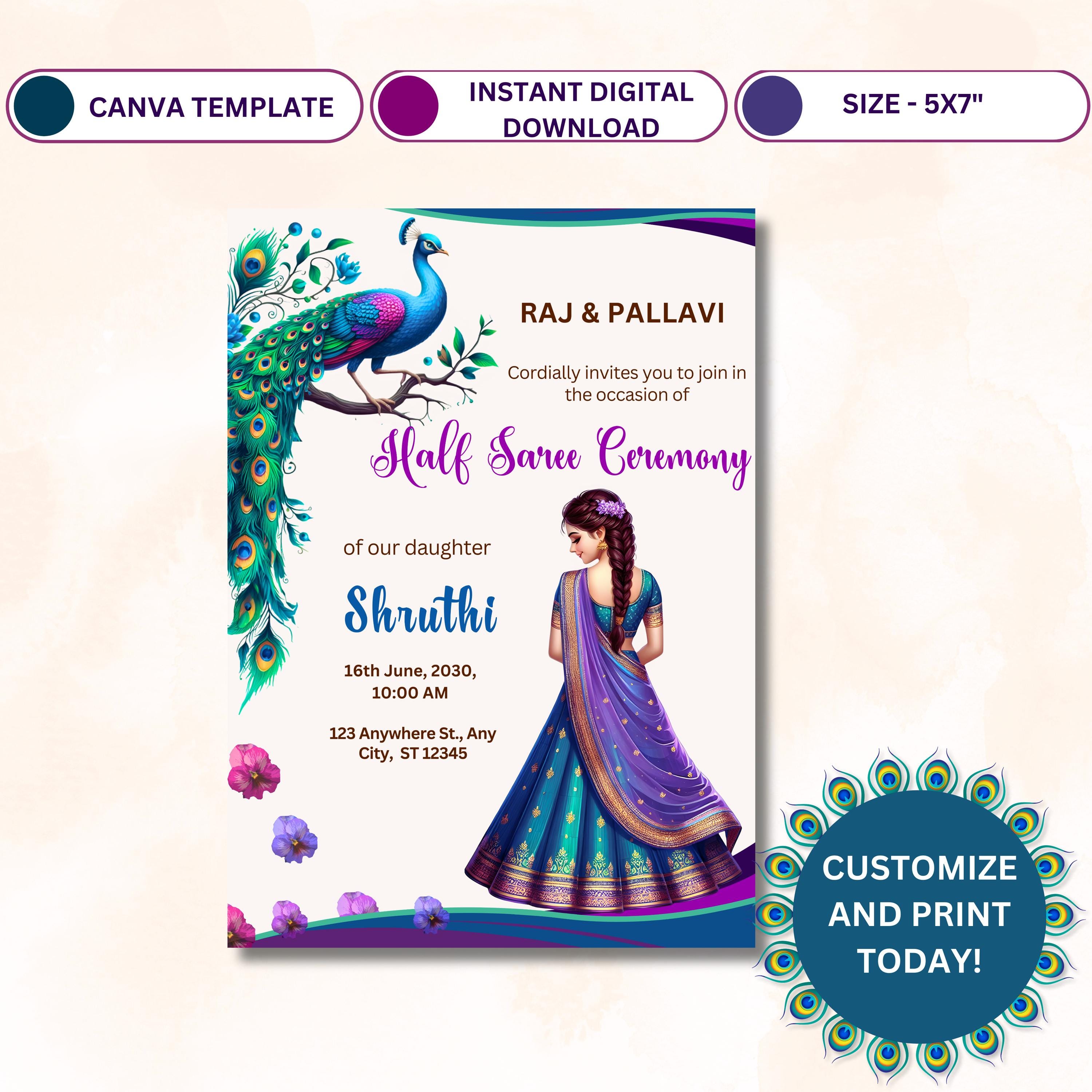 Half Saree Invitation 5x7", Editable Half Saree Ceremony Invitation ...