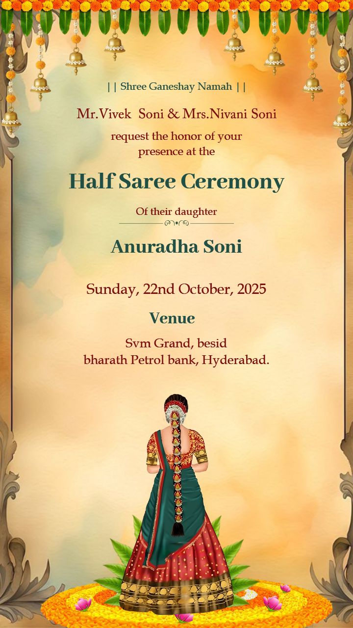 free Half Saree Function Invitation Card & Online Invitations in Telugu