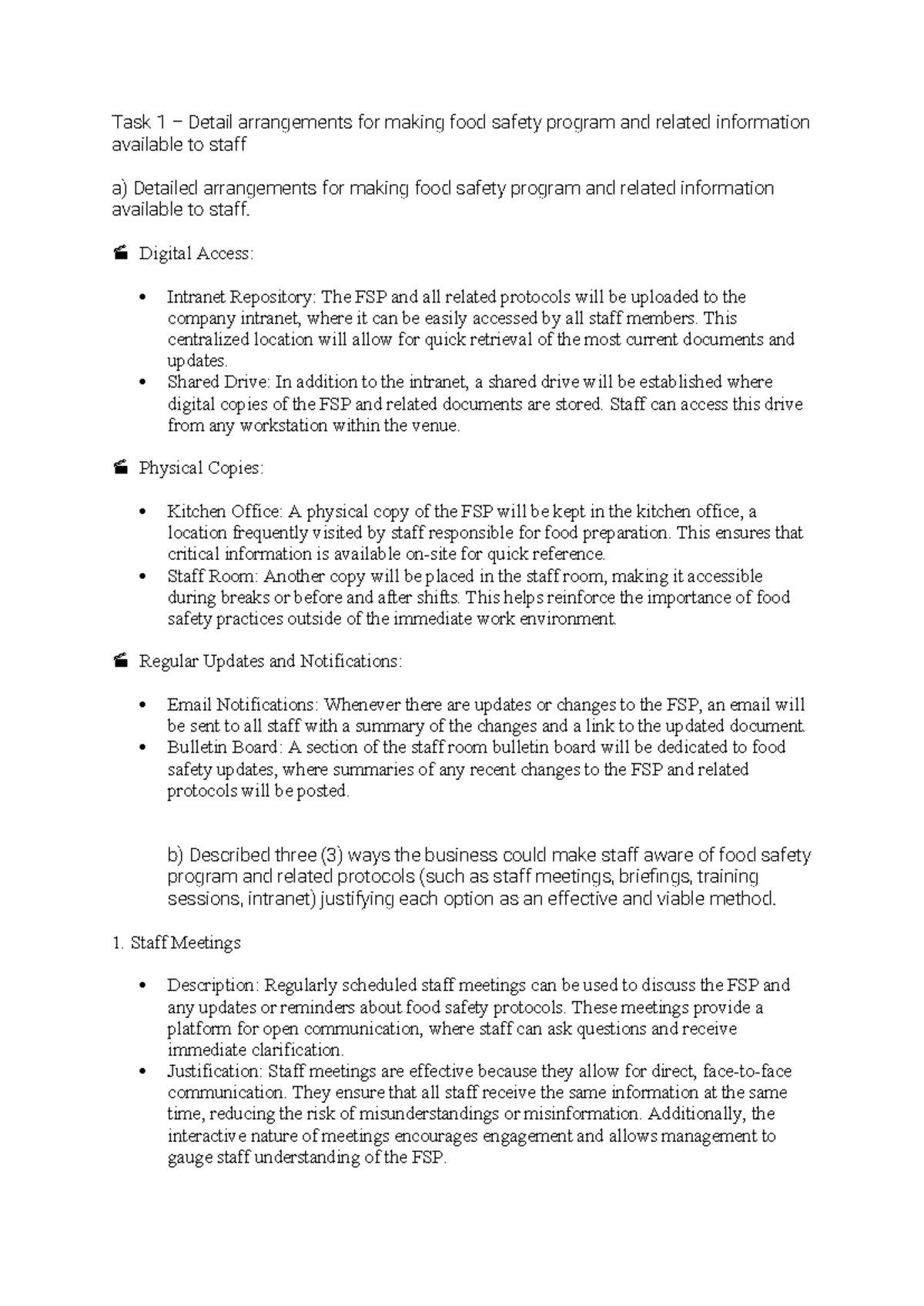 Food Safety Program Implementation and Staff Training Strategies (FSP ...