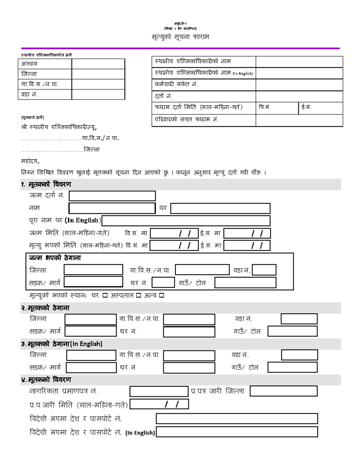 मृत्यु दर्ता फारम - bvbvbv - अनुसूची–३ (ननमभ ५ सॉग सम्वन्धधत ) भृत्मुको ...