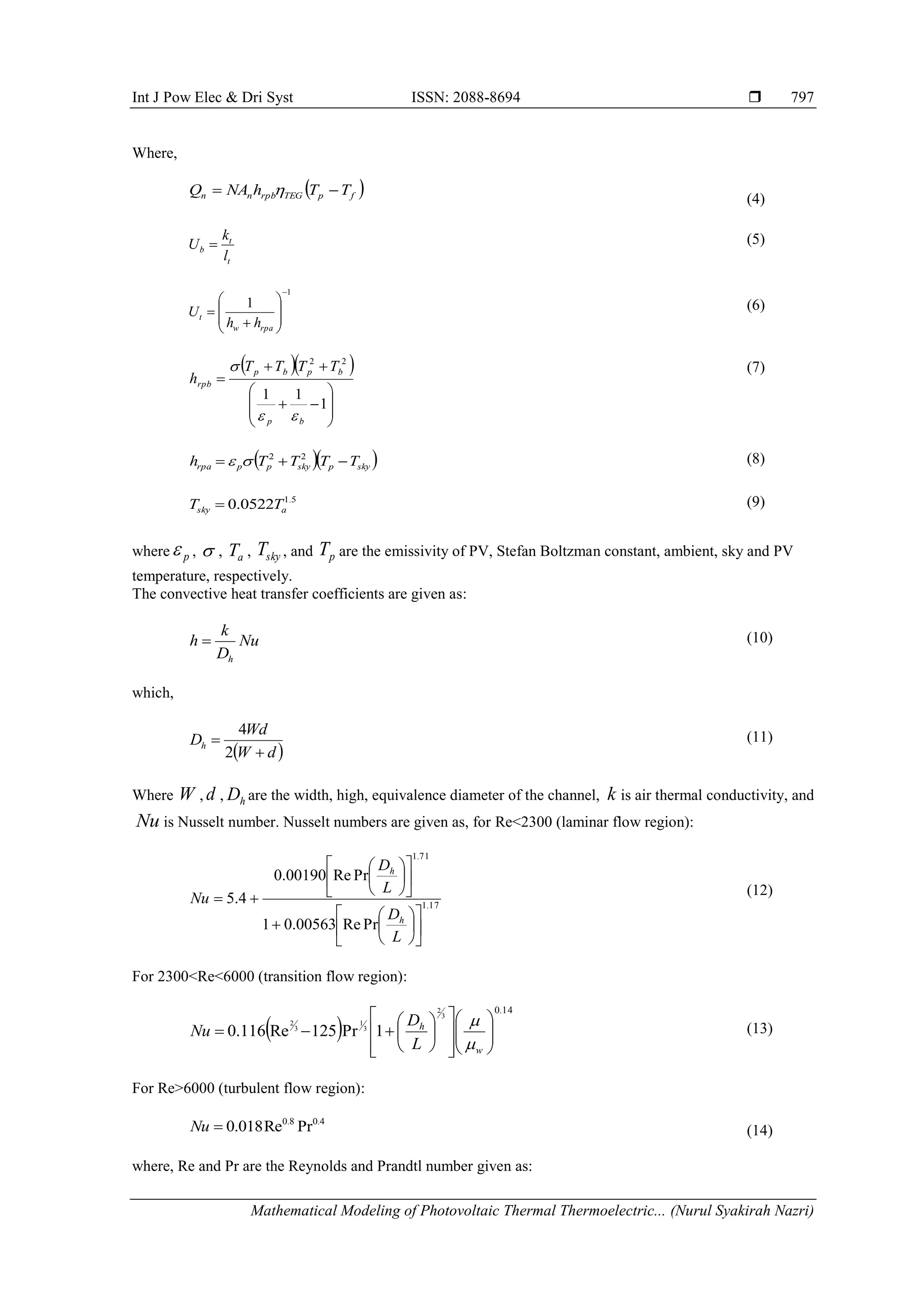 Mathematical Modeling of Photovoltaic Thermal-Thermoelectric (PVT-TE ...