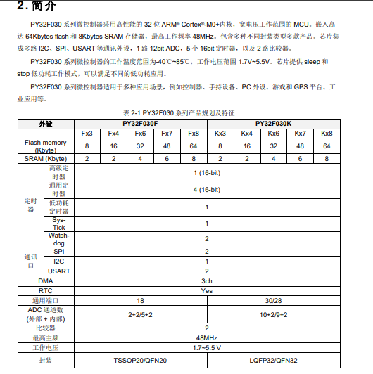 PY32F030系列数据手册 V2.5 | PDF