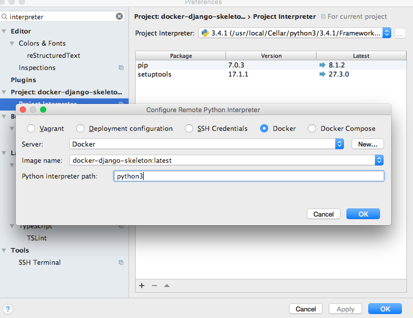 Setting up docker-compose, uwsgi, Django and nginx, for Pycharm, makes ...