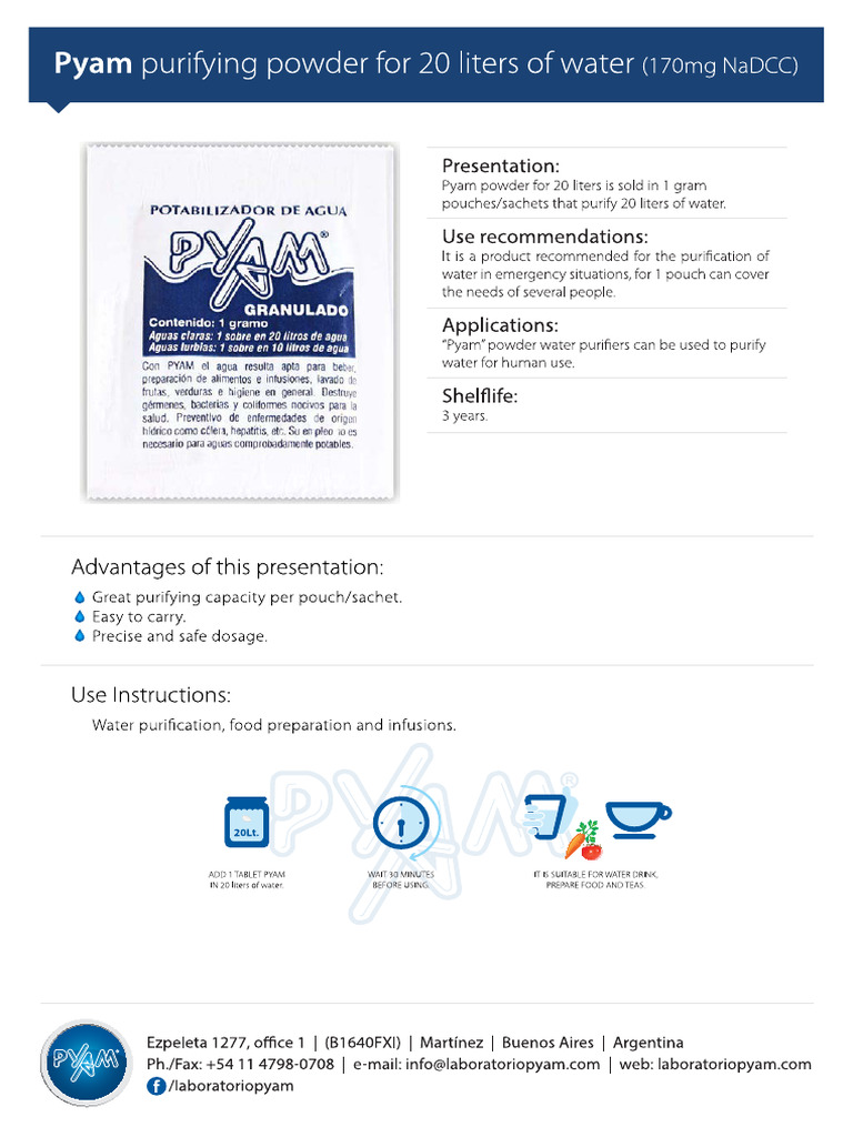 Potabilizador Pyam Granulado para 20 Litros de Agua Eng | PDF
