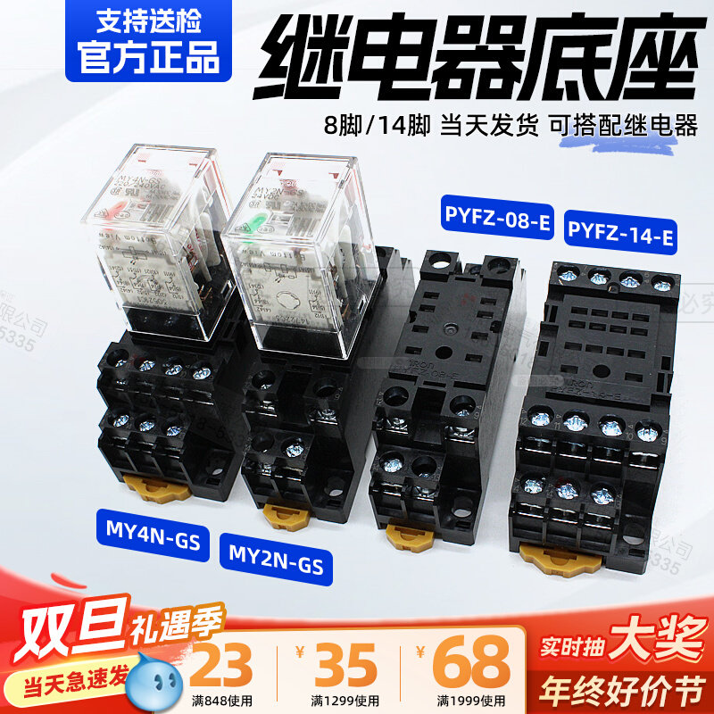 OMRON欧姆龙小型继电器PYFZ 14E插脚14孔底座PYF08A-E座子8孔MY2N_虎窝淘