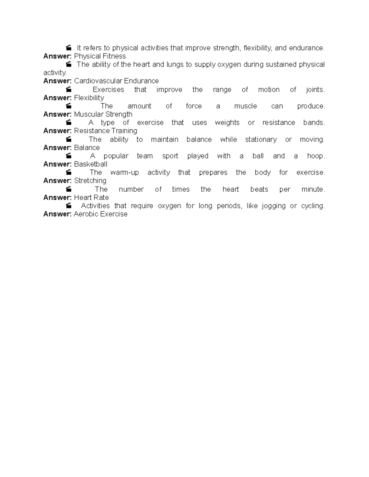 PE Quiz - Physical Fitness Concepts and Terminology - Studocu