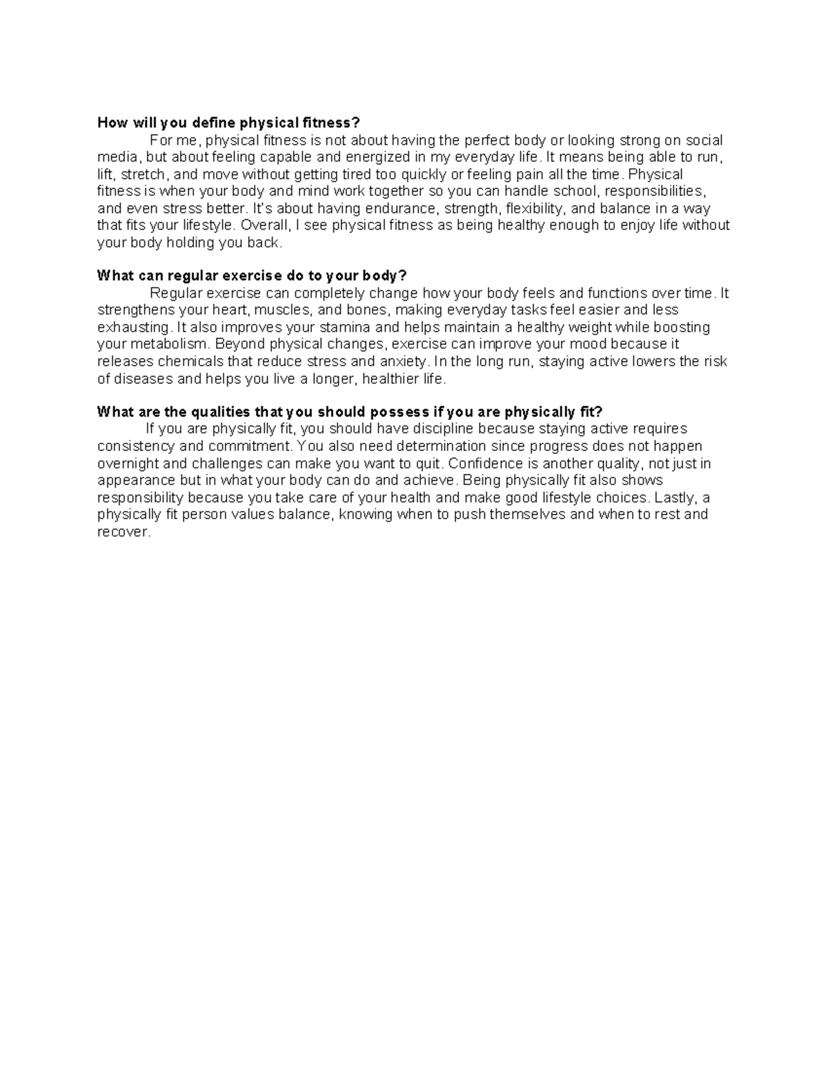 Assignment 1: Defining Physical Fitness and Its Benefits for Pathfit ...