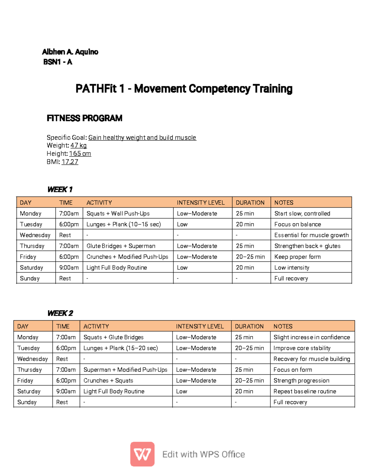 BSN1 A PATHFit 1: Physical Fitness Program for Healthy Weight Gain ...