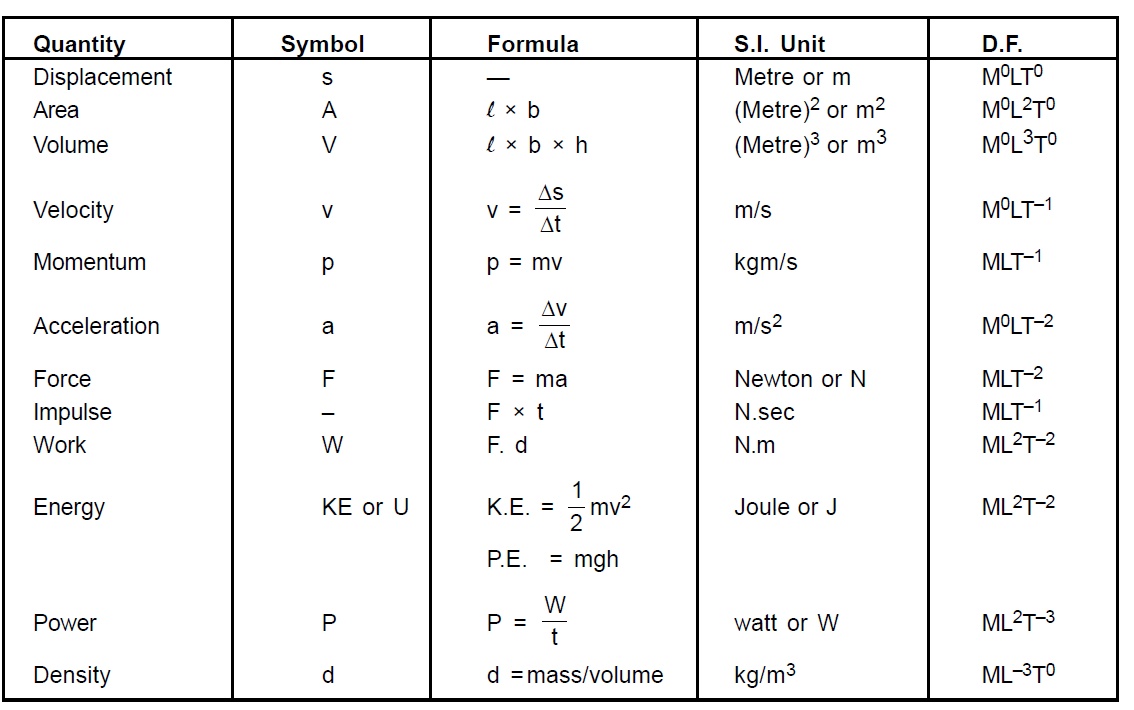 Ace Physics Units And Measurements All Formulas Of Work Energy Class 9