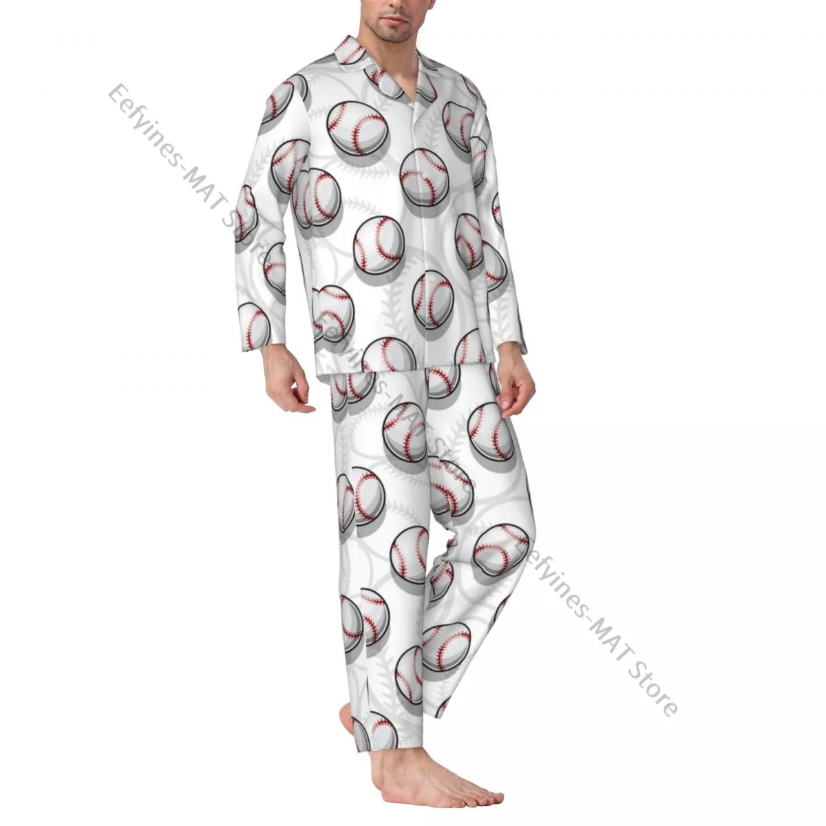 Baseball Cloud Background Pajamas Man Warm Sleepwear Autumn Long-Sleeve ...