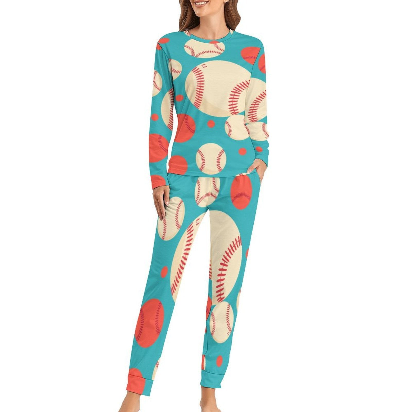 Baseball Colorful Pattern Pajamas 2 Pieces Pajama Sets Woman Long ...