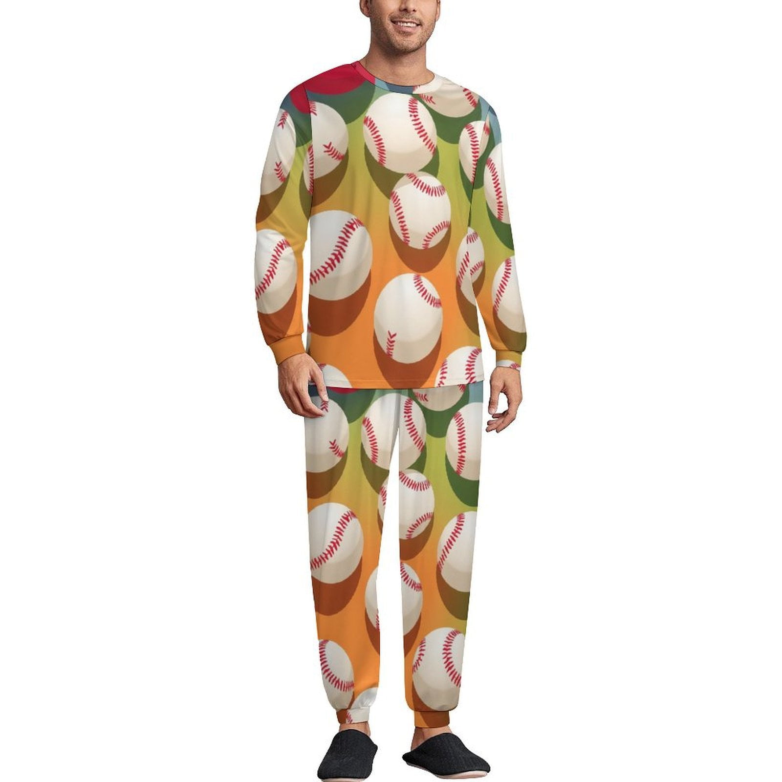 Cauagu Cute Baseball Print Men's Long-Sleeve Pajama Set,Soft Button ...