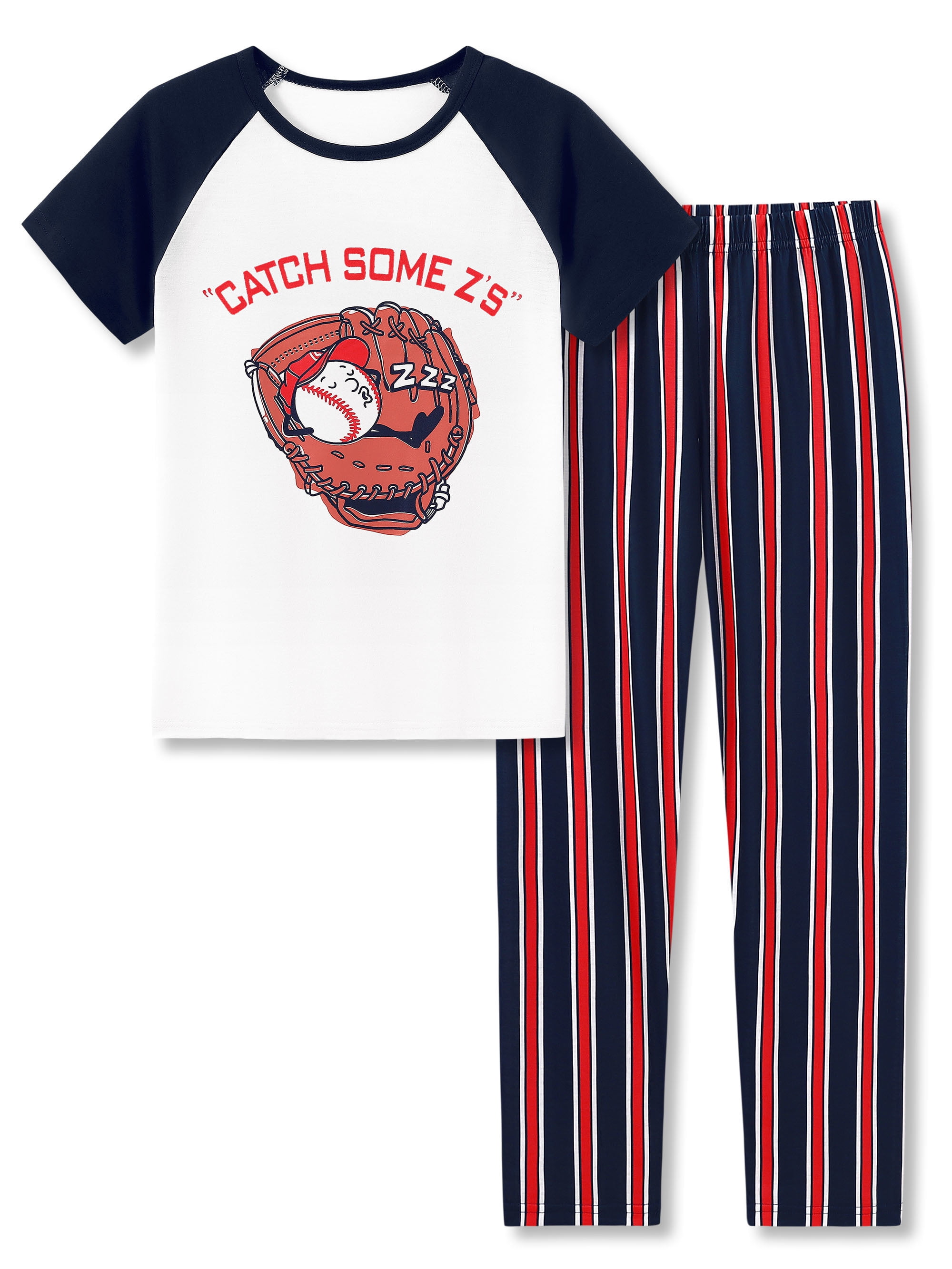 Beezizac Boys Pajamas " CATCH SOME Z ' S " Striped Baseball 2-Piece Fun ...