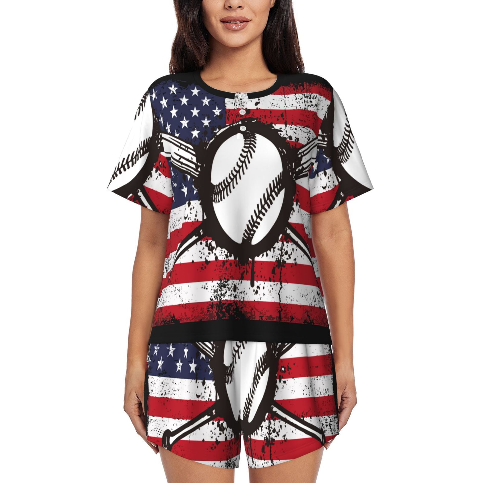 Daiia Vintage Baseball American Flag Pattern Womens Pajama Sets Short ...
