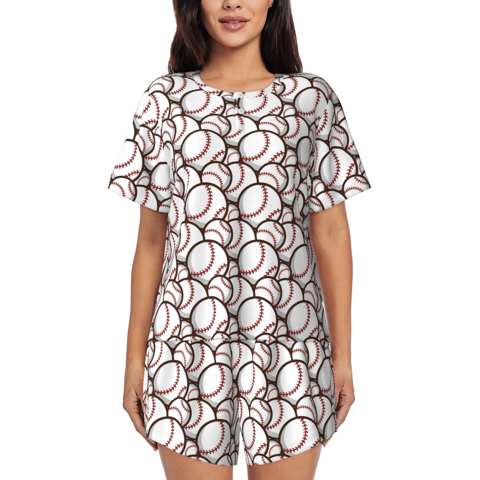 Goofa Cute Baseball for Womens Cotton 2 Piece Pajamas Set Classic Short ...