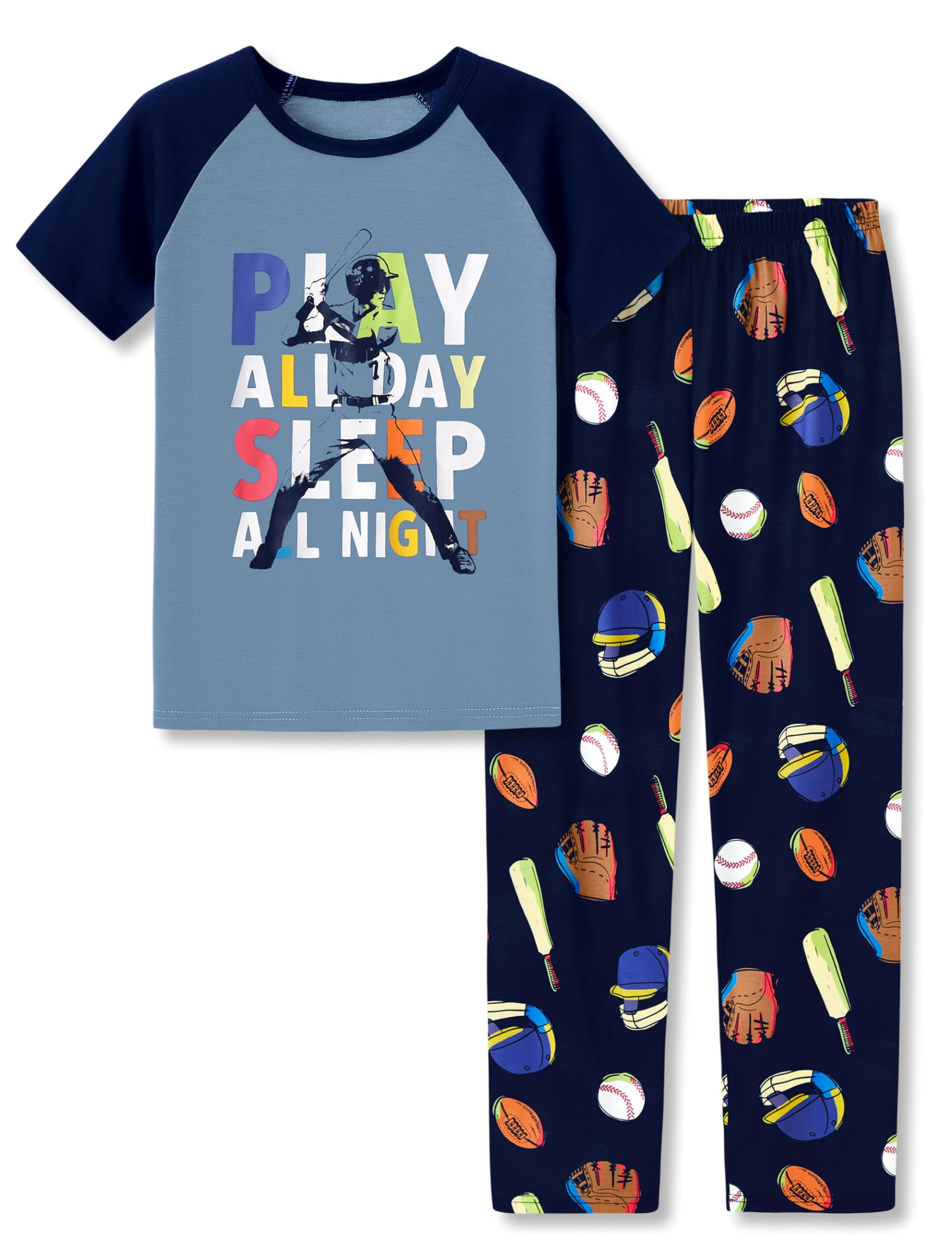 Amazon.com: A&J DESIGN Boys Baseball Pajamas Children Sleepwear Set, 12 ...
