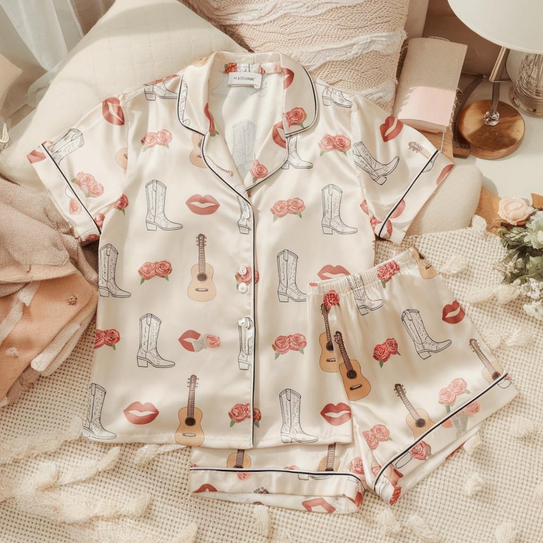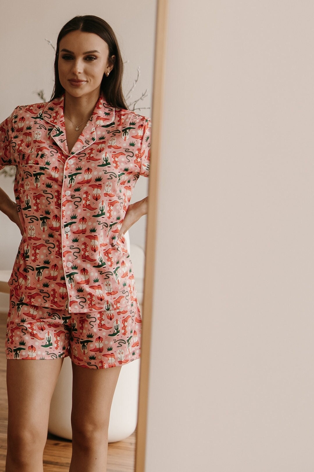 Coquette Cow Girl Satin Pajamas Set, Western Pattern Pajama, Western ...