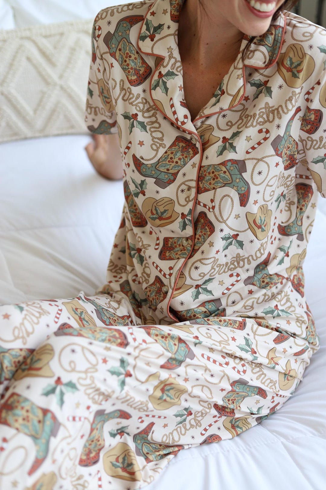 Cowboy Boots Pajamas, Western Print Pajamas, Christmas Sleepwear Set ...