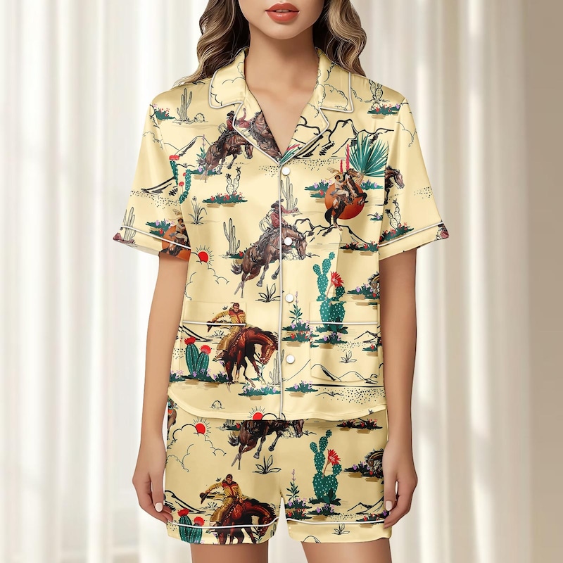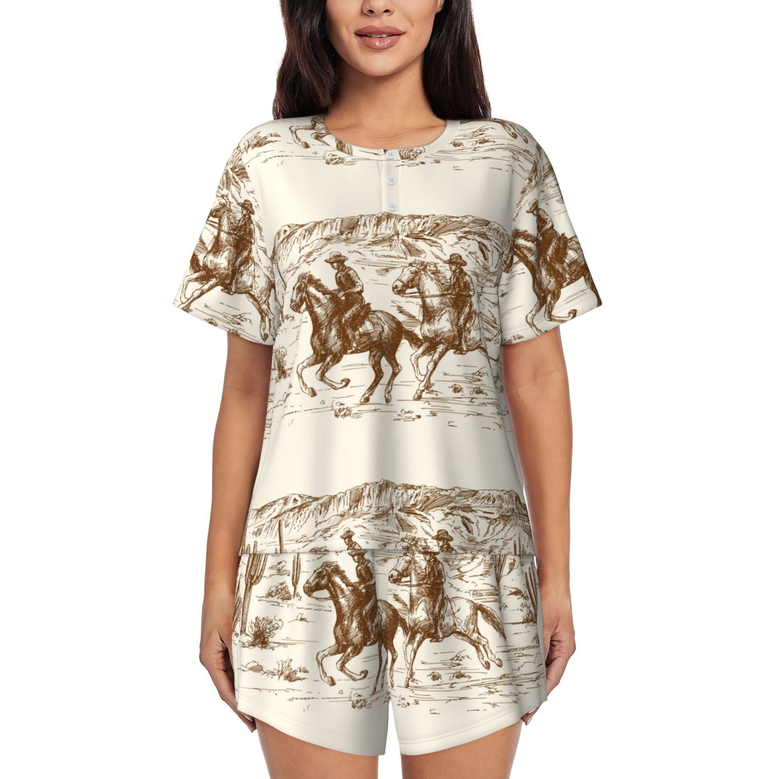 Daiia Vintage Cowboy Riding Horse Pattern Womens Pajama Sets Short ...