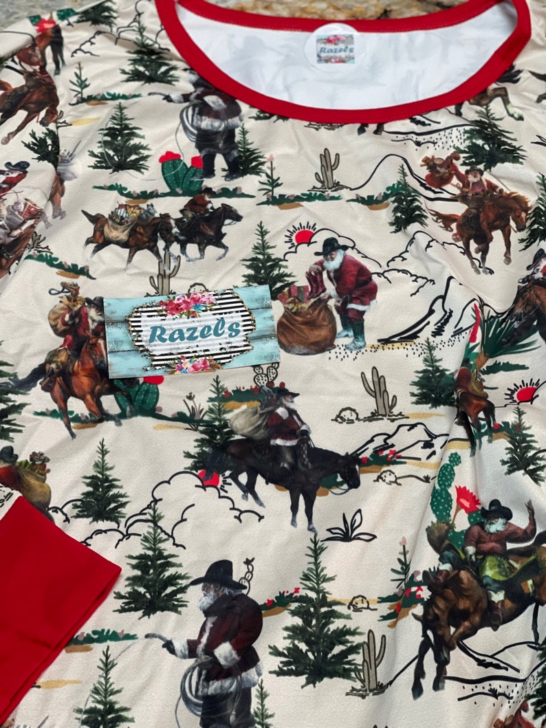Western Christmas Pajamas, Cowgirl Pjs, Holiday Pajamas, Cowboy Santa ...