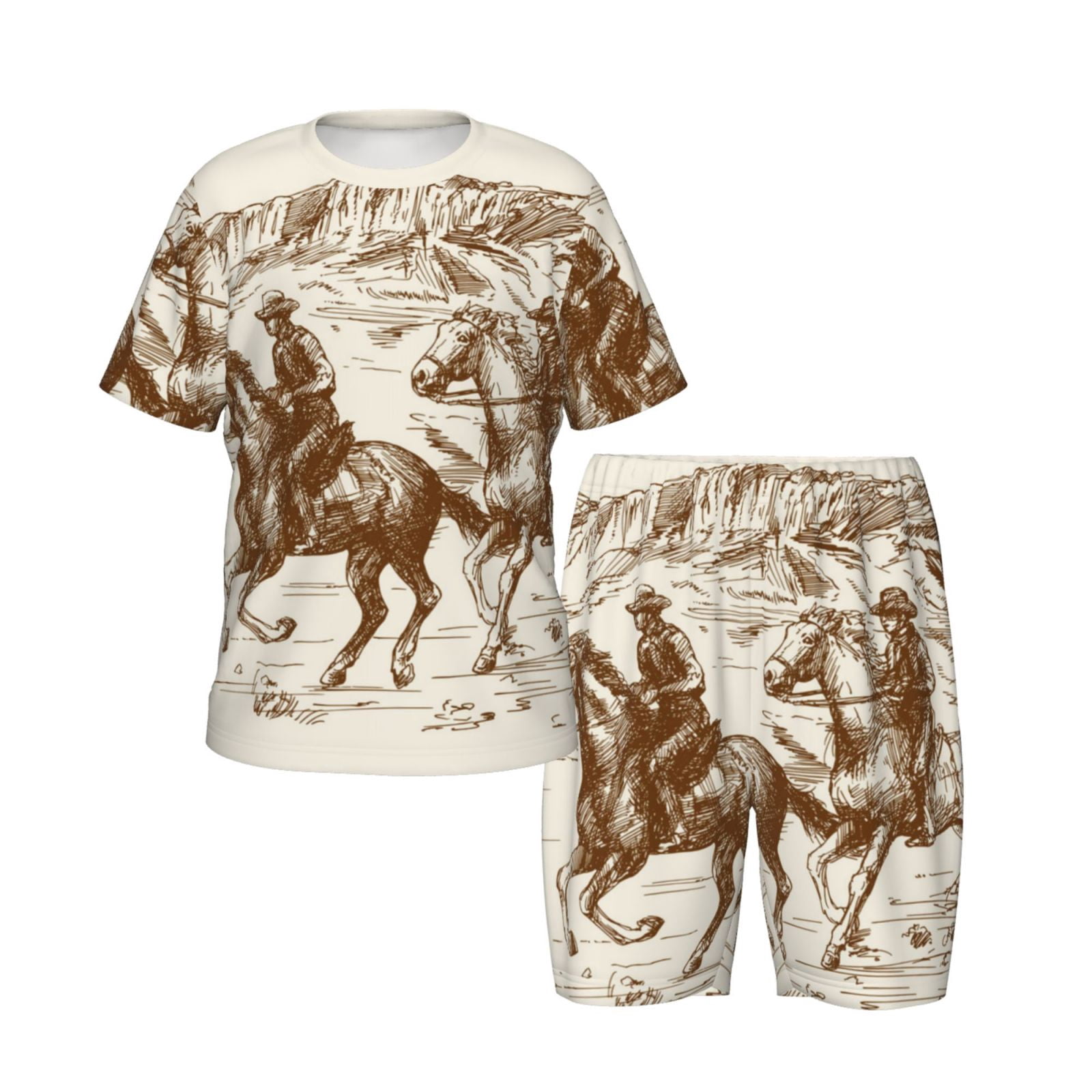 Cauagu Western Desert Cowboy for Women's Round Neck Pajama Set,Short ...
