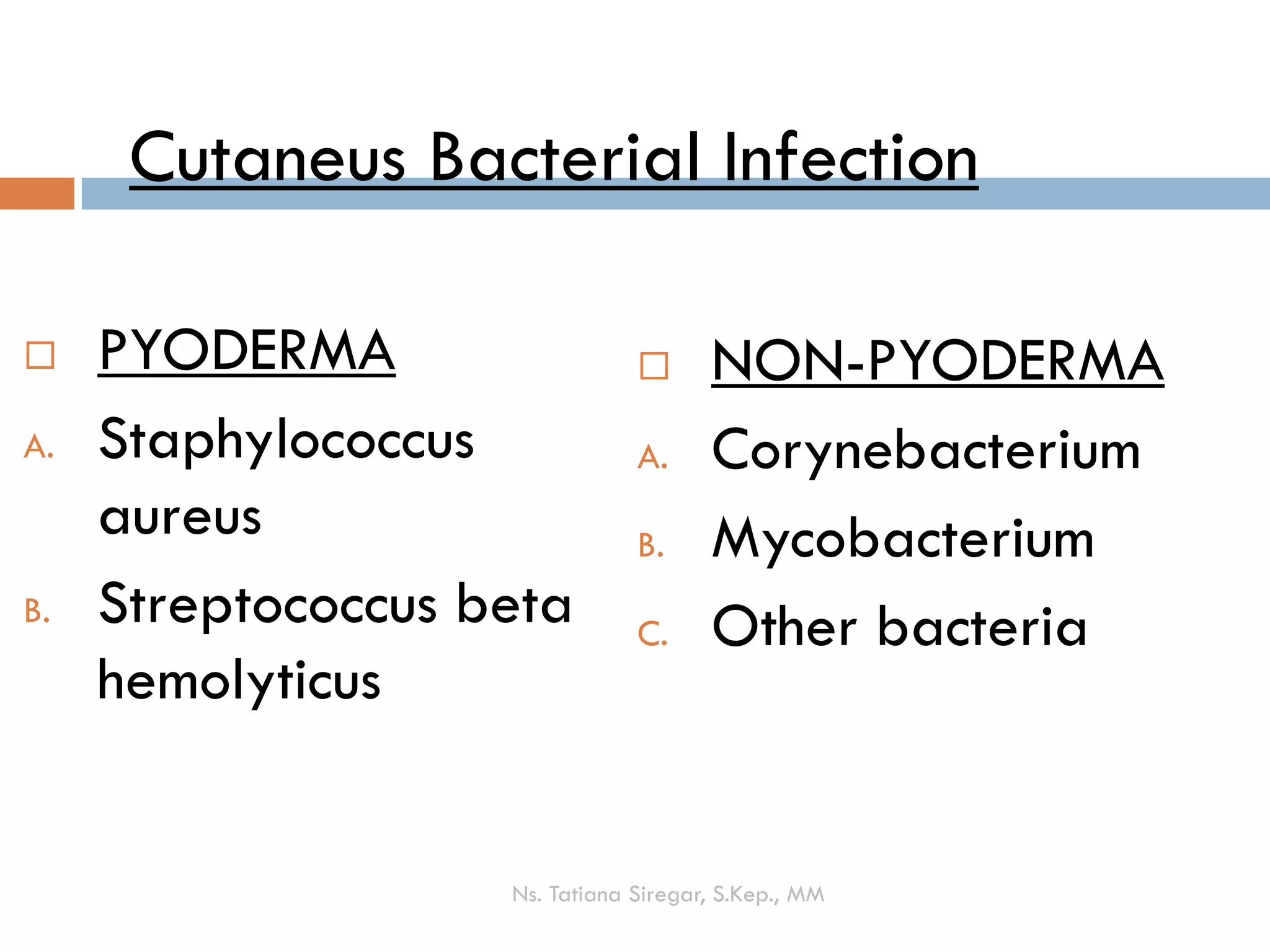 Cutaneus Bacterial Infection n A B PYODERMA Staphylococcus
