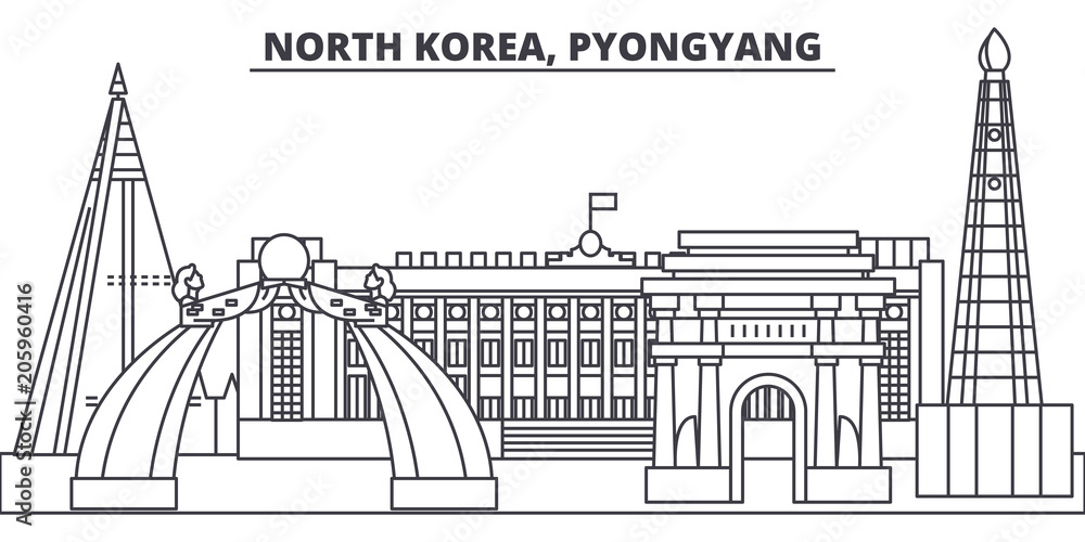North Korea, Pyongyang line skyline vector illustration. North Korea ...