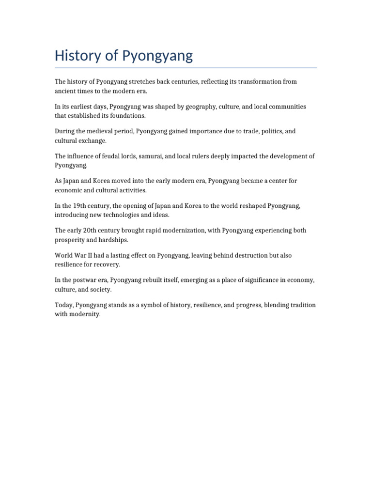History and Significance of Pyongyang | PDF | Pyongyang | Korea